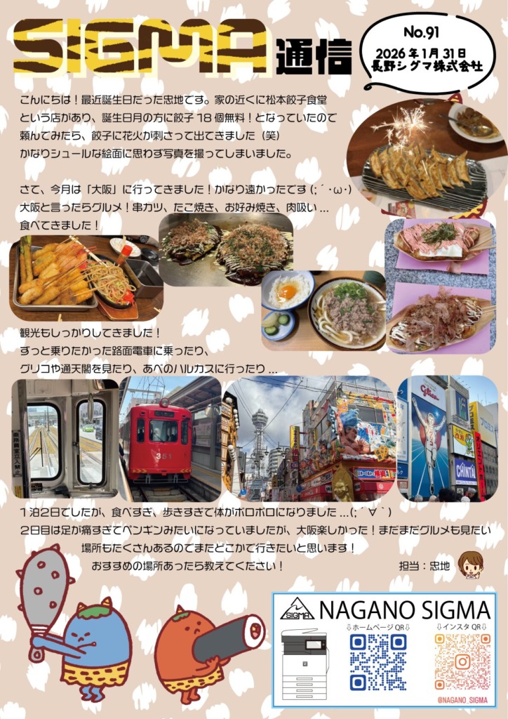 SIGMA通信 No.91 1月|大阪グルメ旅と、なりすましメールへの注意喚起